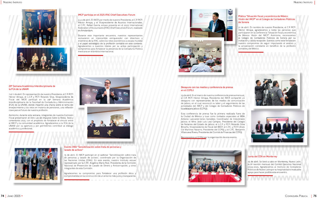 Entérate de los principales eventos institucionales realizados por el IMCP y sus Federadas y nuestros encuentros con autoridades y organismos profesionales.