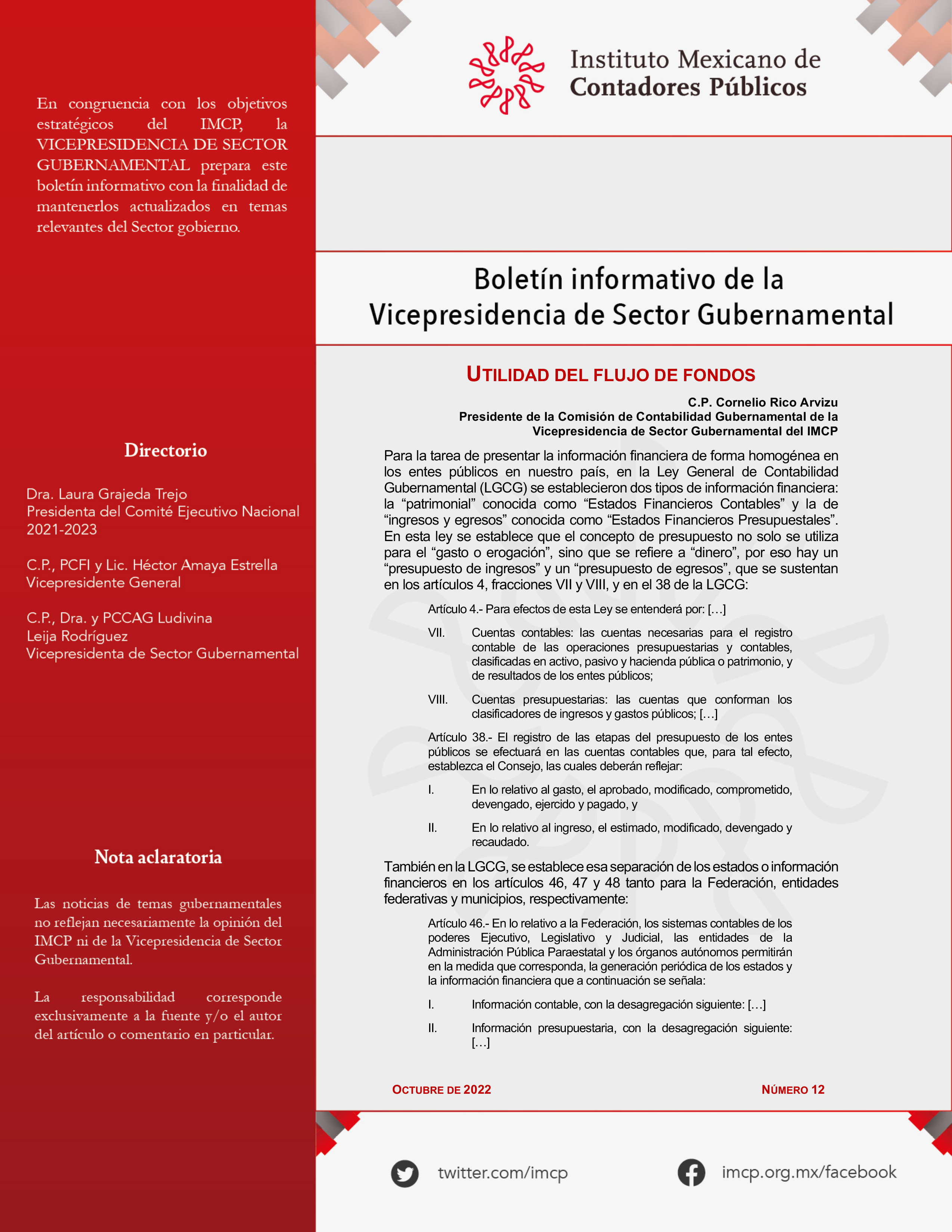 Presidente de la Comisión de Contabilidad Gubernamental de la Vicepresidencia de Sector Gubernamental del IMCP